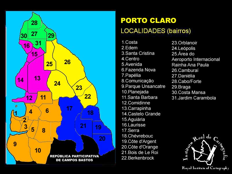 toa. Cada distrito tem as suas características próprias. Veja os mapas de Porto Claro e de outras micronações na página do Instituto Real de Cartografia.